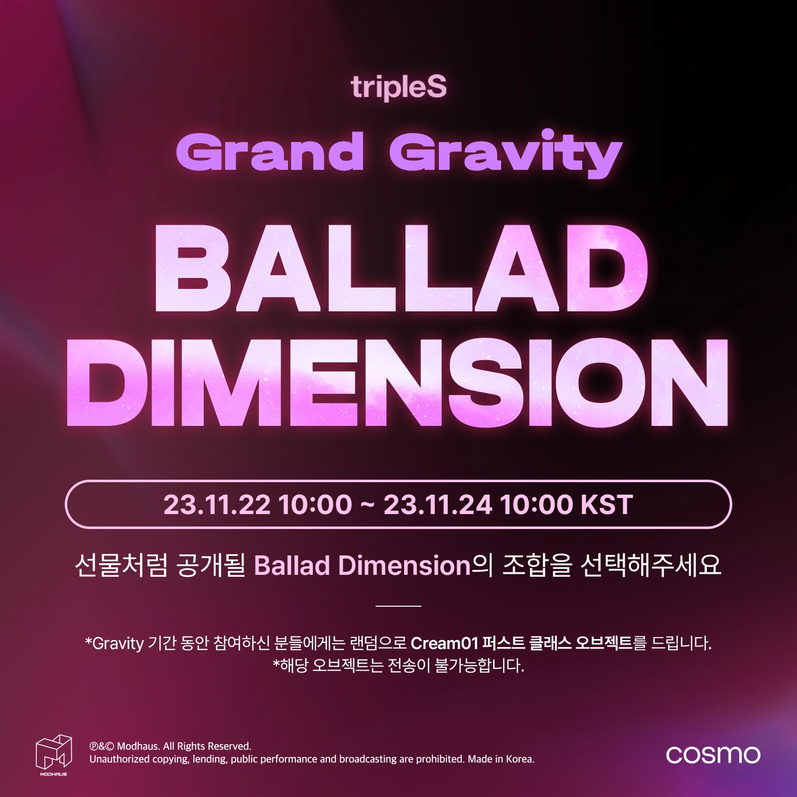 The tenth gravity, titled Event Gravity: Ballad Dimension Name, was officially announced on November 21, 2023.