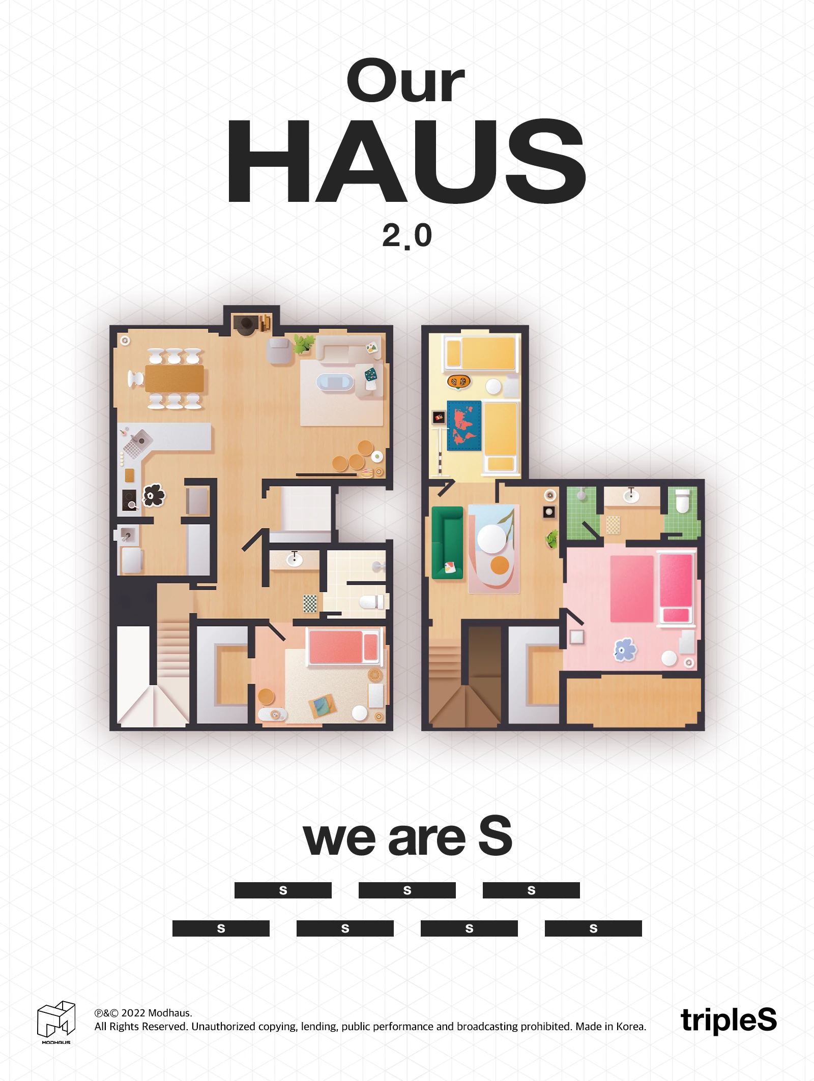 A “HAUS” (German for “House”) is a dormitory where the tripleS members reside. Due to the large amount of members, there are multiple different HAUSES and members frequently move around to become better acquainted with new members and for more space. There have been eleven HAUSES in total so far, with members currently staying in the MOD Forest HAUS, the MODU HAUS, the Cookie HAUS, and one unnamed HAUS, which has only been mentioned a couple of times.[1][2]