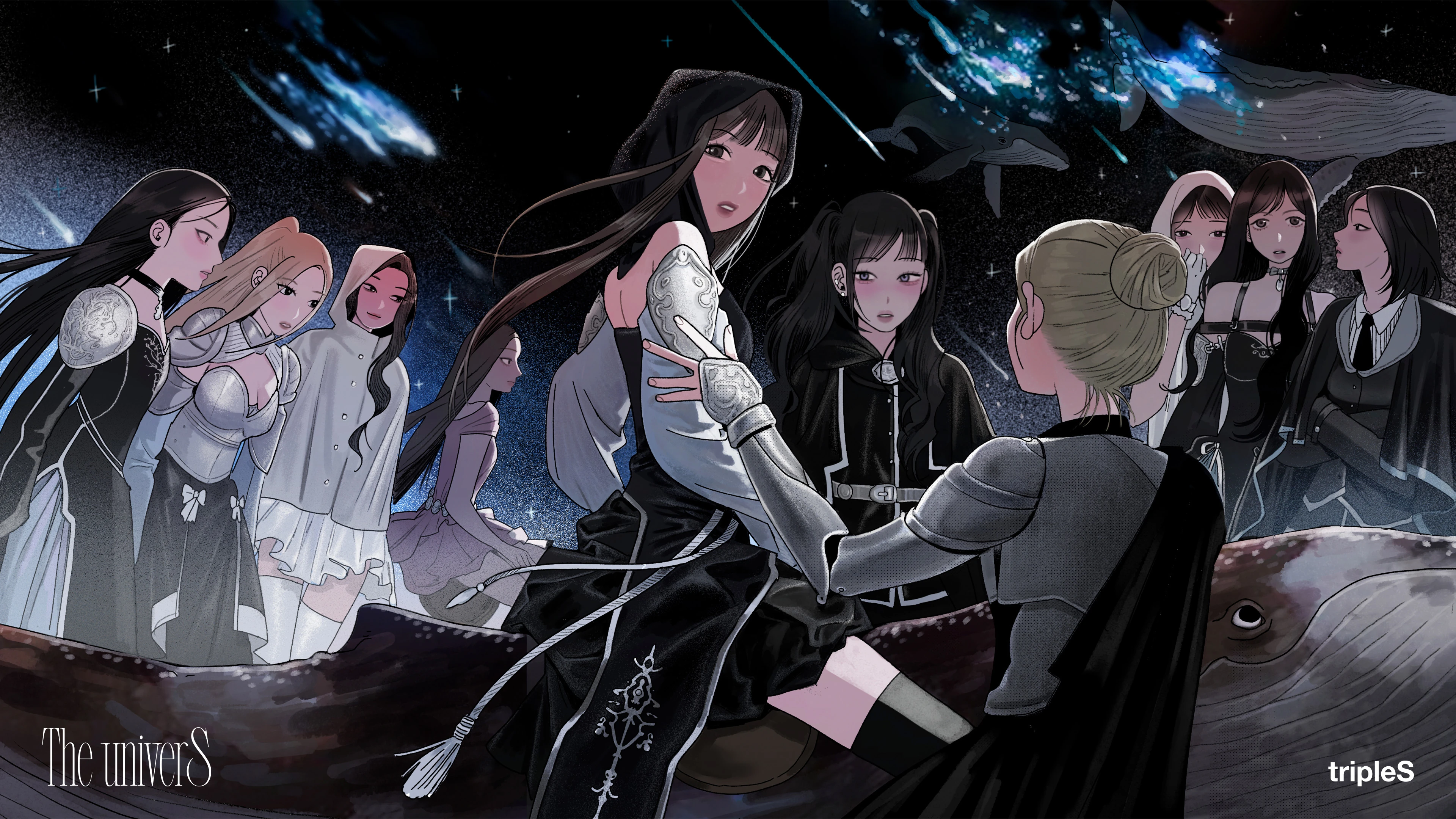 <The univerS> is an interactive gravity novel featuring the members of tripleS in a fictional alternative universe where the story is determined by the fans through the novel's weekly event gravities.